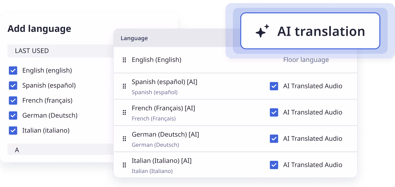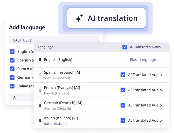 AI translation for all meetings. Get real-time audio and captioning with an intuitive setup.