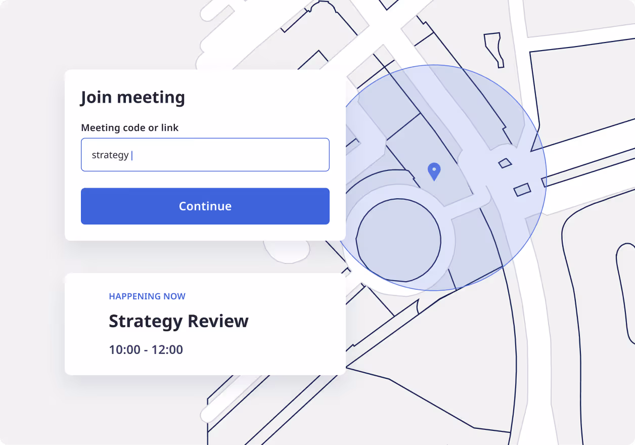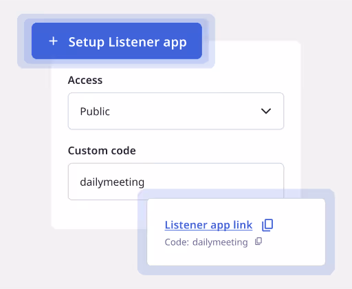 Set up the app simply. Select your access and choose your meeting code: use a predefined code or access a custom code.